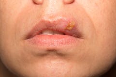 Cold sores, also known as fever blisters, last for about two weeks and then clear up on their own.